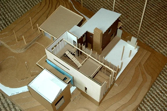 This 2700sf two story home for an artist creates an edge along a forested ridge above Roseburg Oregon. As the visitor enters and travels through the house views are framed and laid out to create a tension between inside and out as well as emphasize the edge of the ridge.